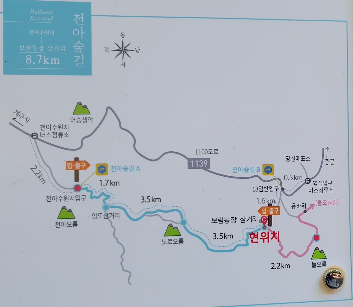2. 교통 정보: 한라병원 정류장 탑승 → 한라산둘레길(천아숲길입구) 정류장 하차(240번 버스)