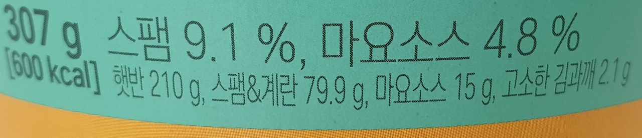 햇반 210g / 스팸&계란 79.9g / 마요 소스 15g / 고소한 김과 깨 2.1g