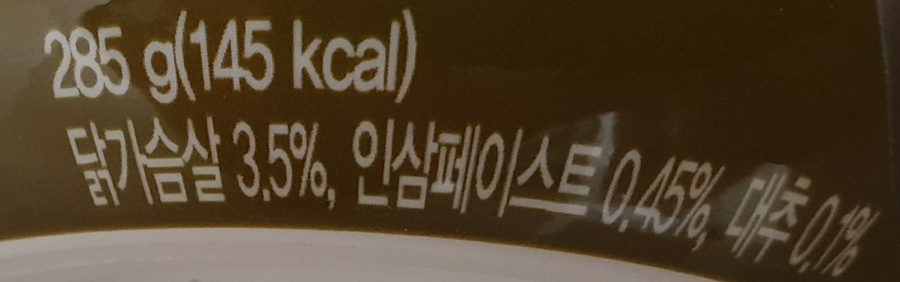 닭가슴살 3.5% / 인삼 페이스트 0.45% / 대추 0.1%
