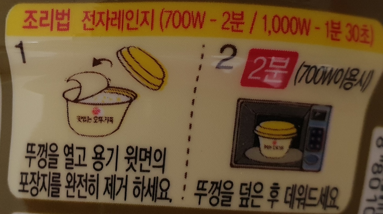 전자레인지 (700w - 2분 / 1,000w - 1분 30초)