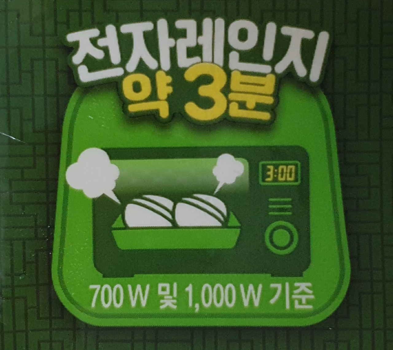 전자레인지 약 3분(700w 및 1,000w 기준)