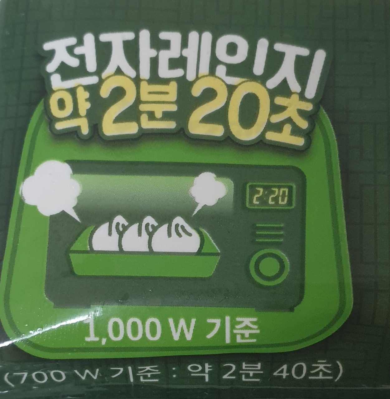 - 가정용 전자레인지 700w 기준: 약 2분 40초