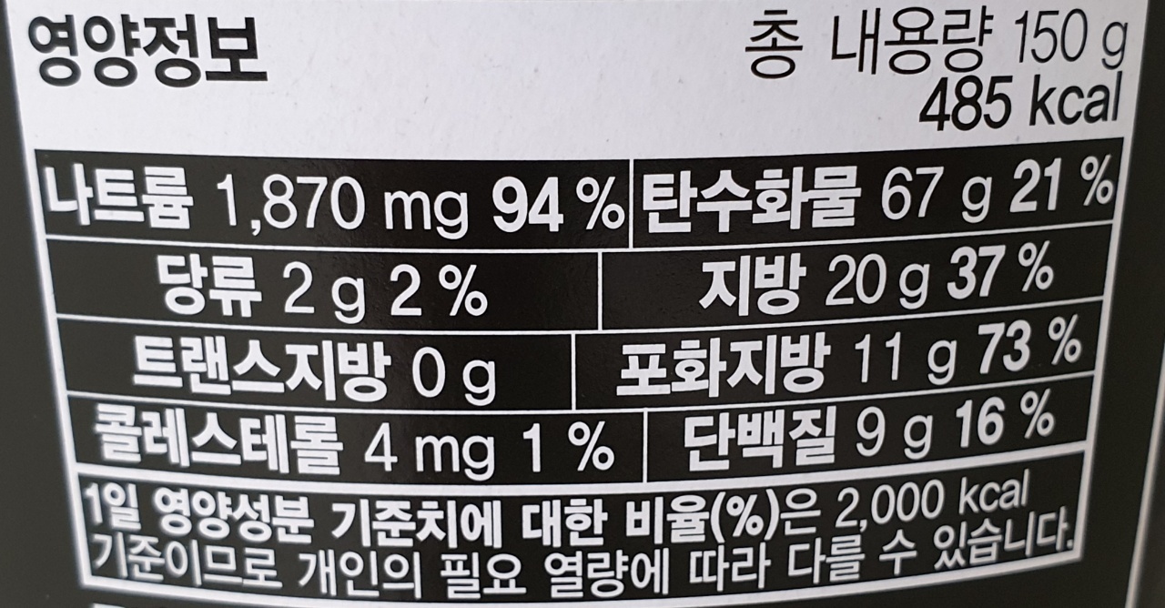 유탕면 / 150g / 485kcal