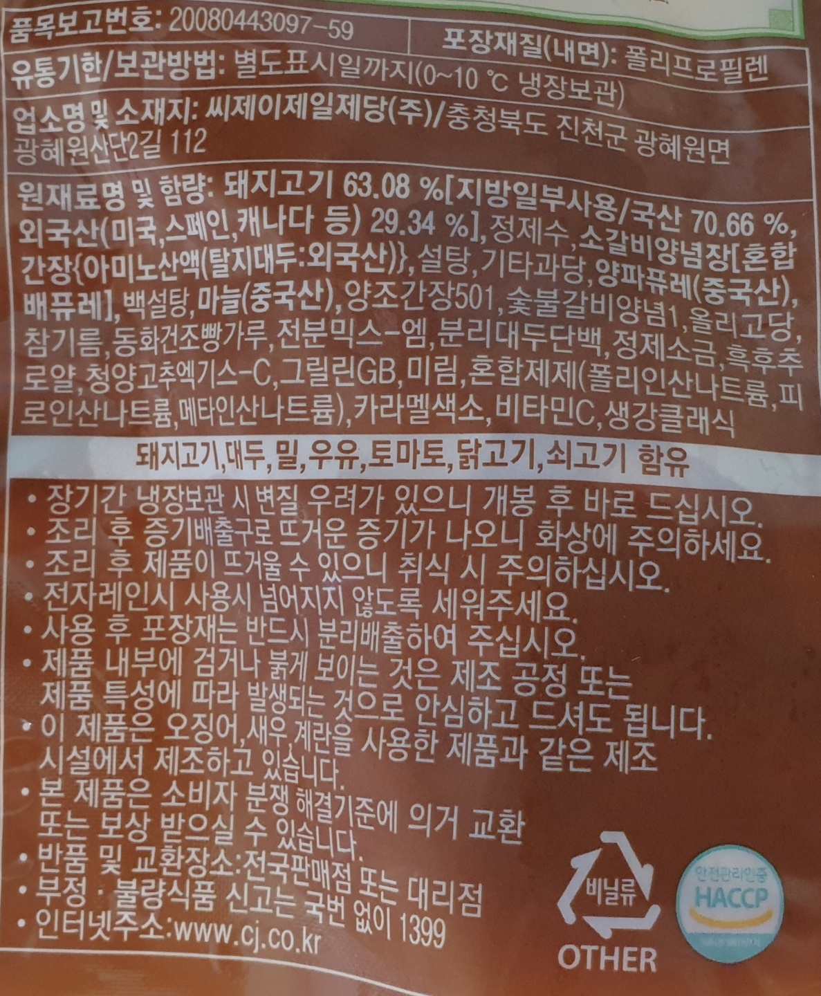 제품명: 비비고 한입떡갈비