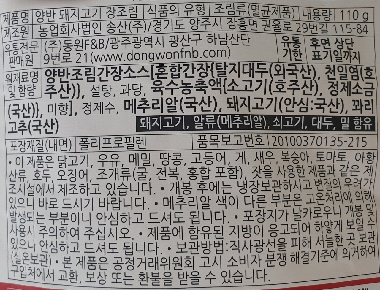 동원 양반 돼지고기 장조림