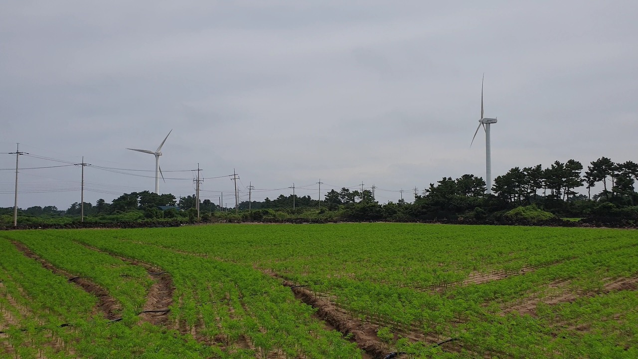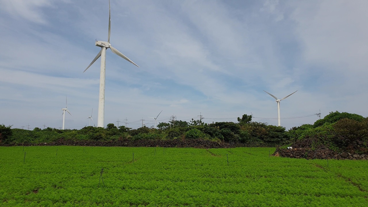 걸어가는 길에 풍력 발전기가 많이 보였습니다.