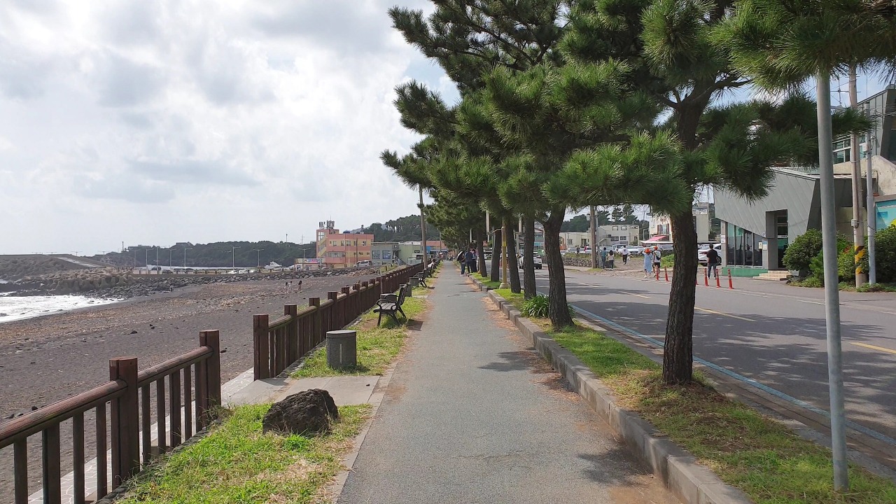 하효 쇠소깍 해변을 따라 걸어갑니다.