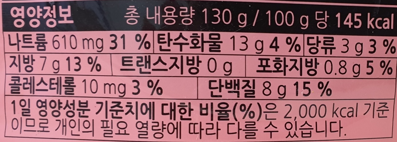 큐브참치 28.10%(가다랑어 64.80%, 황다랑어 19.07%), 고추소스 27.91%