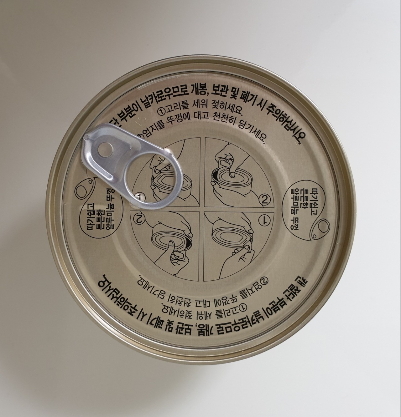 플라스틱 뚜껑을 뜯으니, 캔 뚜껑이 있습니다.