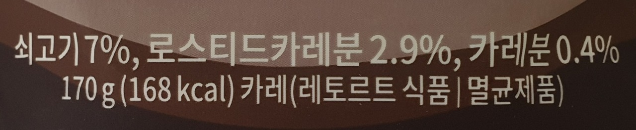 쇠고기 7%, 로스티드카레분 2.9%, 카레분 0.4%