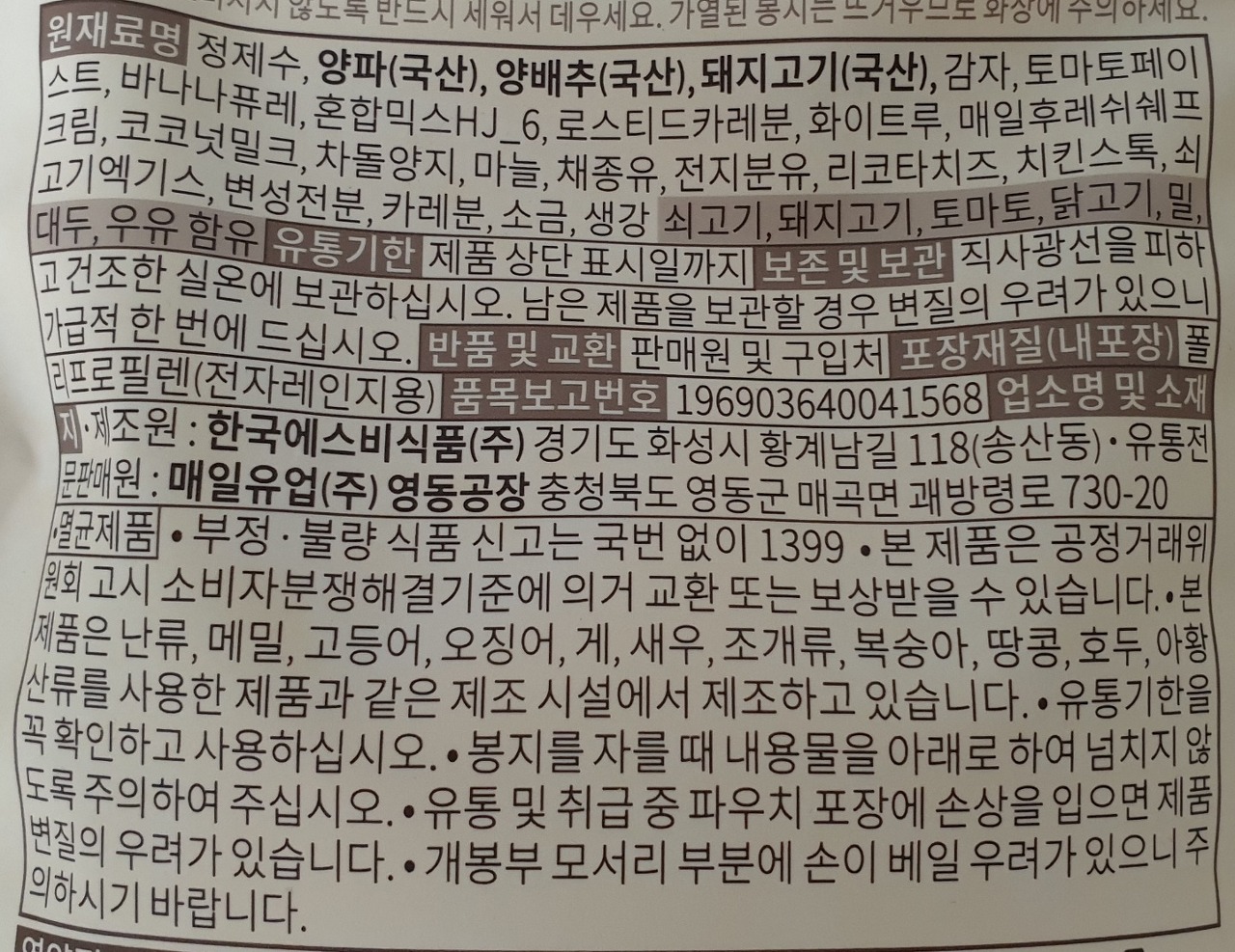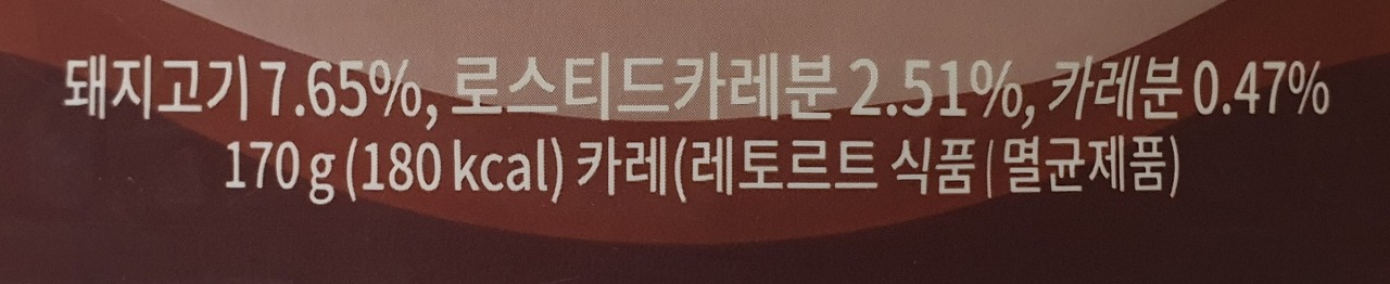 돼지고기 7.65%, 로스티드카레분 2.51%, 카레분 0.47%