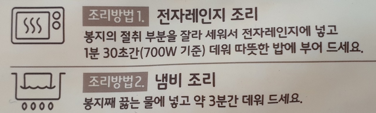 봉지째 끓는 물에 넣고 약 3분간 데워 드세요.