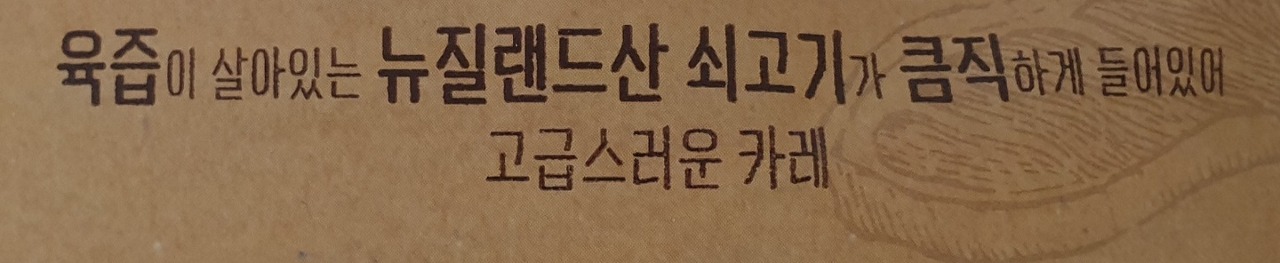 육즙이 살아있는 뉴질랜드산 쇠고기가 큼직하게 들어있어 고급스러운 카레