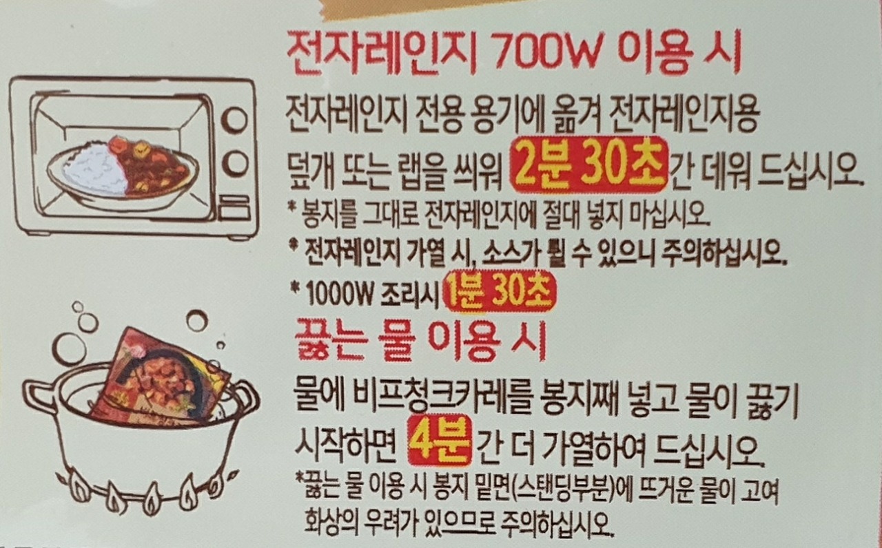 * 전자레인지 가열 시, 소스가 튈 수 있으니 주의하십시오.