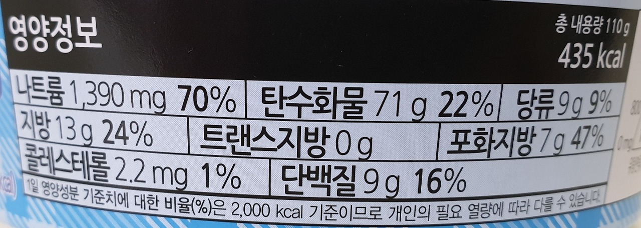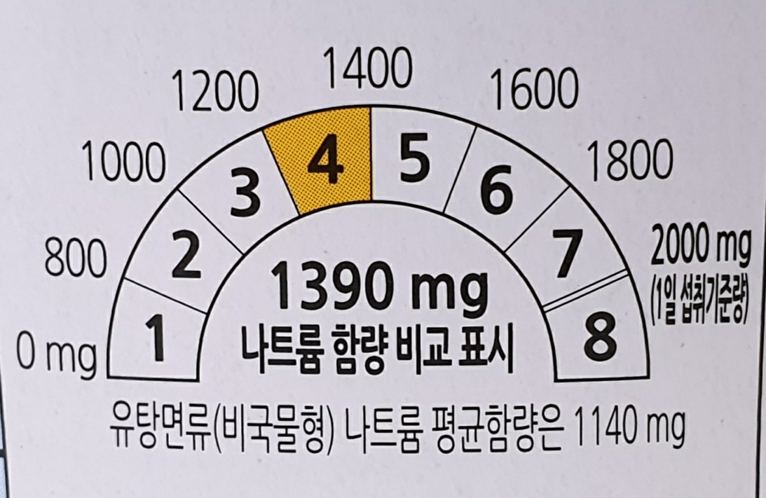 나트륨 함량 비교 표시 입니다.
