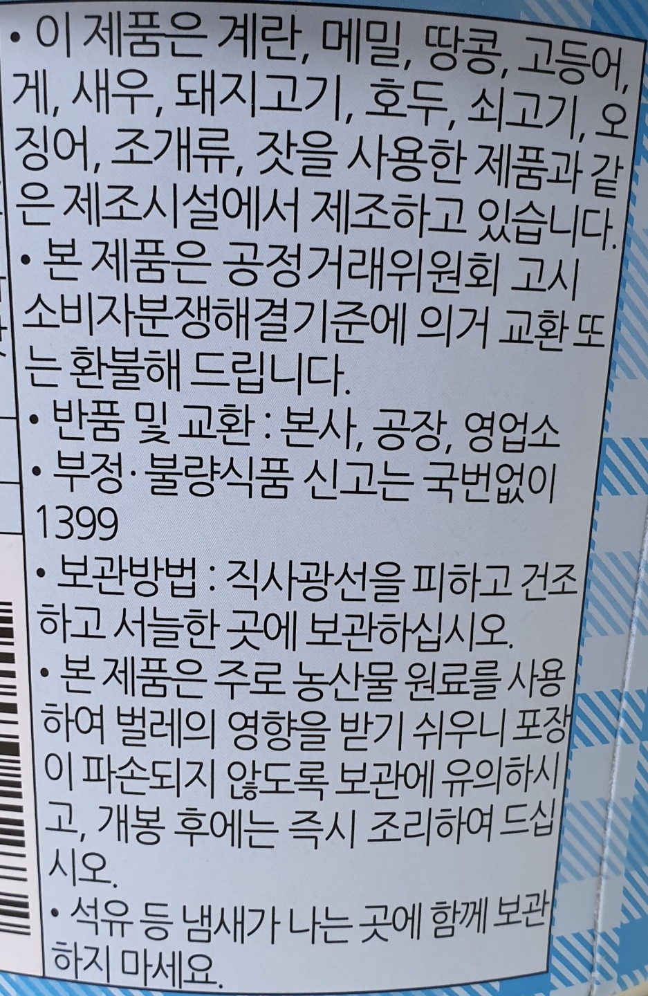 제품에 대한 유의 사항이 적혀 있습니다.