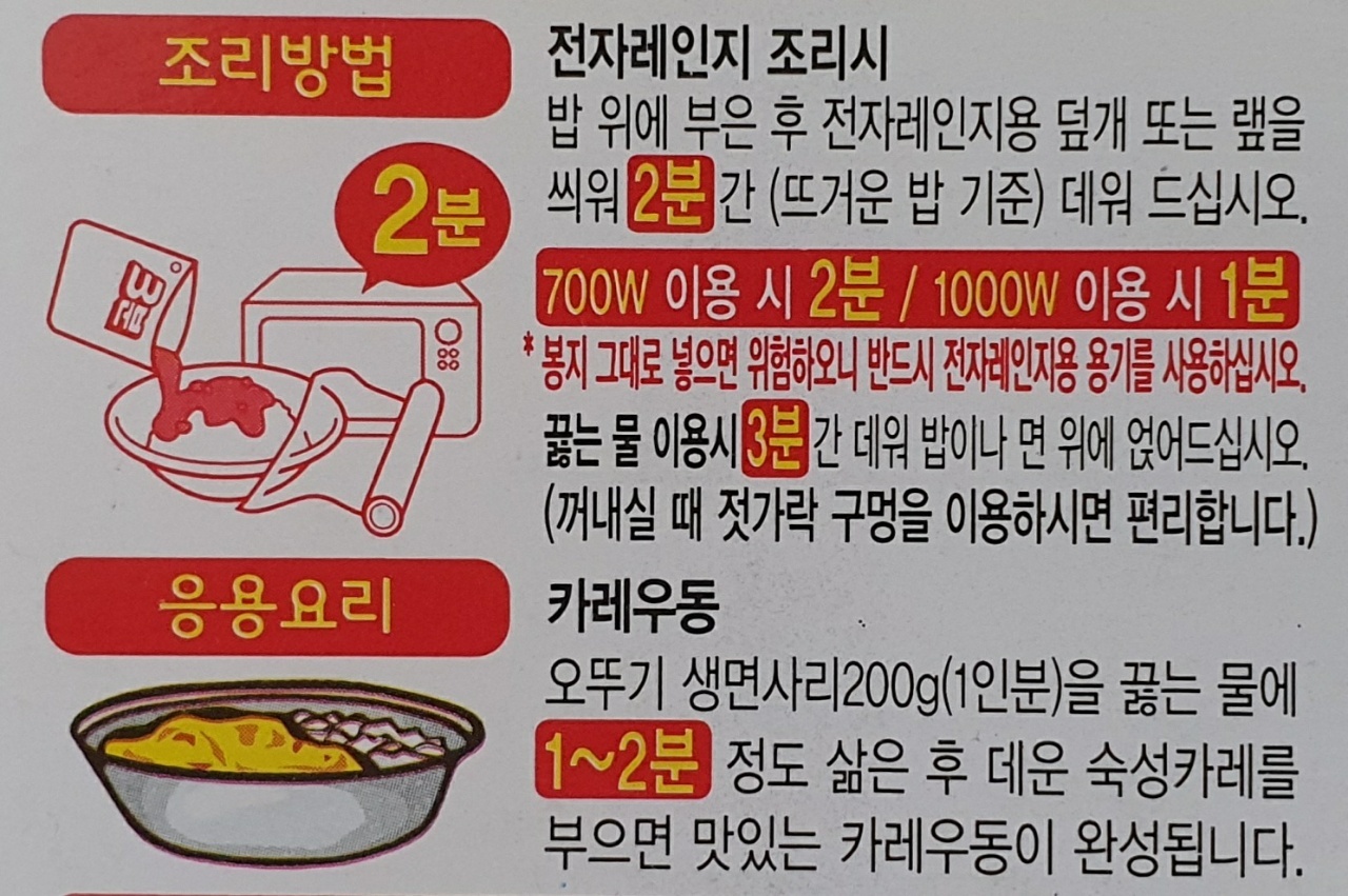3분간 데워 밥이나 면 위에 얹어 드십시오.