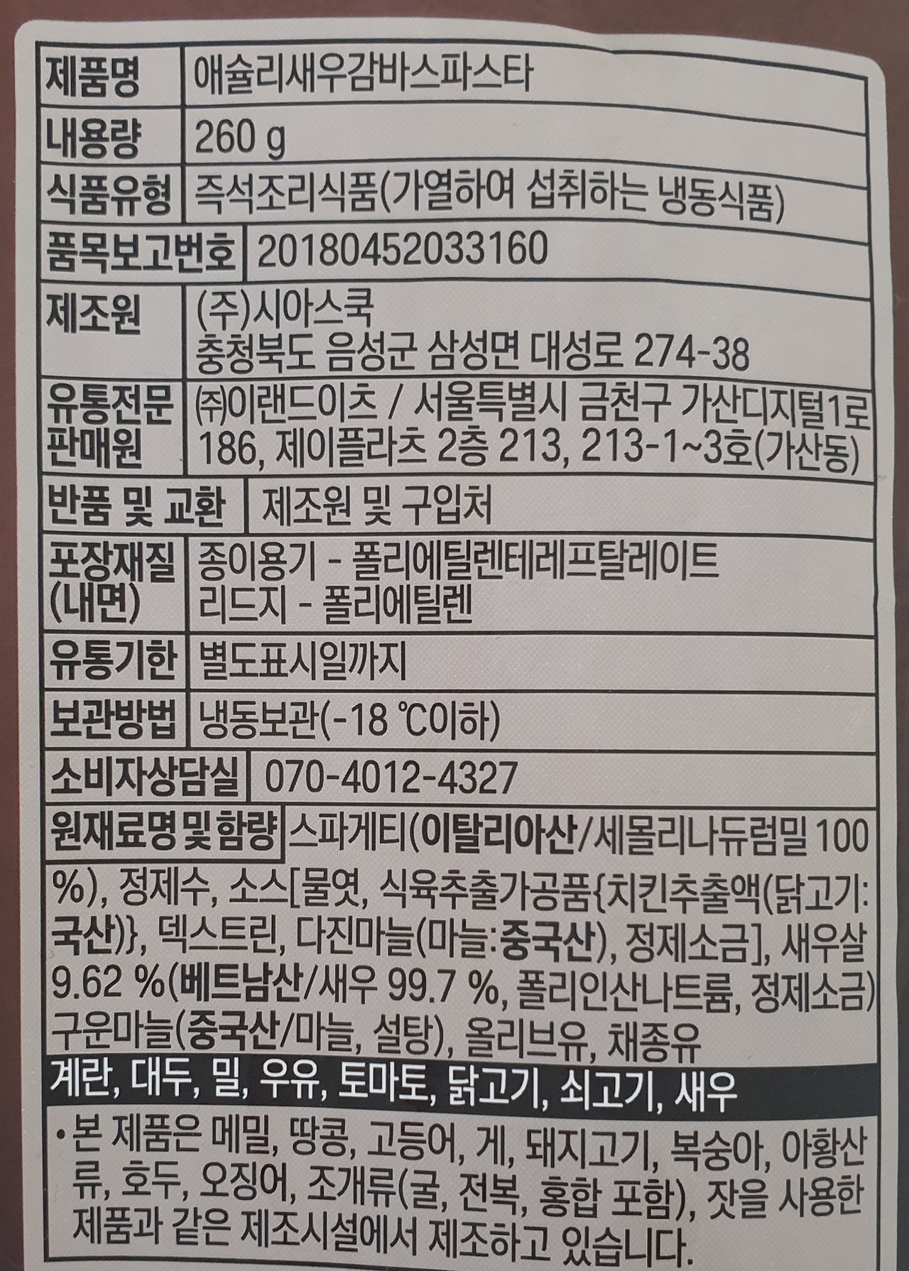 원재료 정보가 적혀 있습니다.