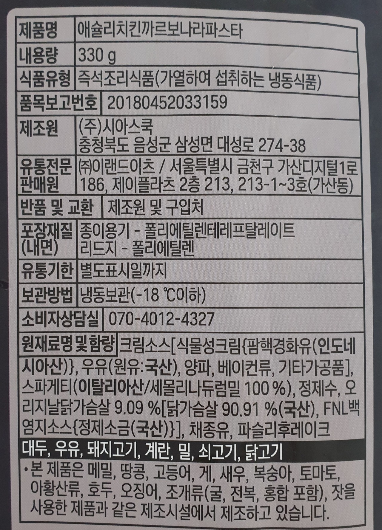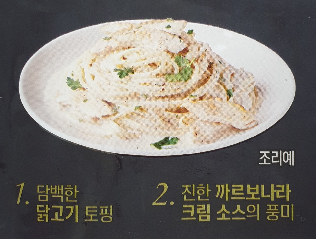 2. 닭고기가 굉장히 담백해서(닭가슴살 함유량이 높아서 더욱 담백하게 느껴짐) 자칫 느끼할 수 있는 까르보나라 파스타의 맛을 잘 잡아주었습니다.