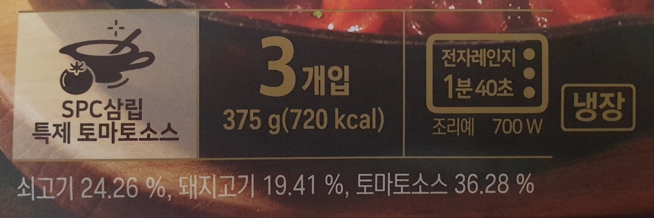 쇠고기 24.26%, 돼지고기 19.41%, 토마토 소스 36.28%