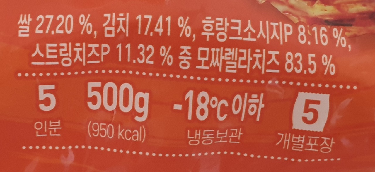 5인분 / 500g (950kcal) / -18℃이하 냉동보관 / 개별포장