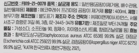 이번에 소개할 상품은 에코후레쉬 곰팡이 제거제 입니다.