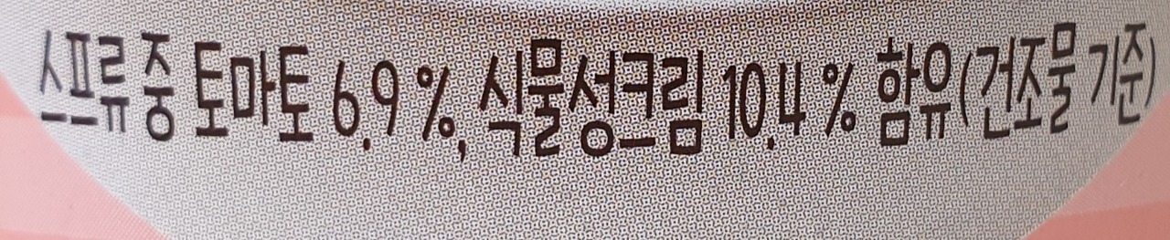 스프류 중 토마토 6.9%, 식물성 크림 10.4% 함유 (건조물 기준)