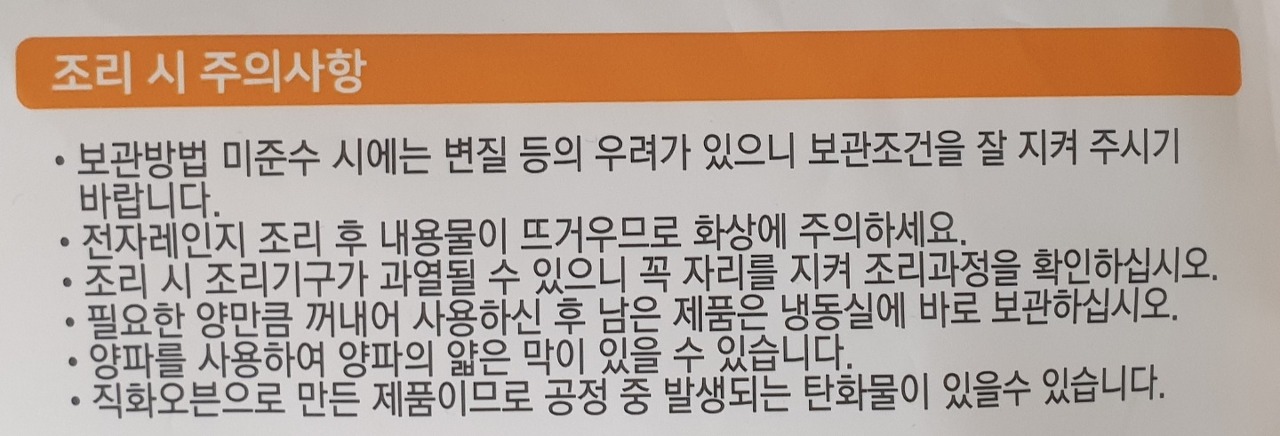 조리 시 주의 사항이 적혀 있습니다.