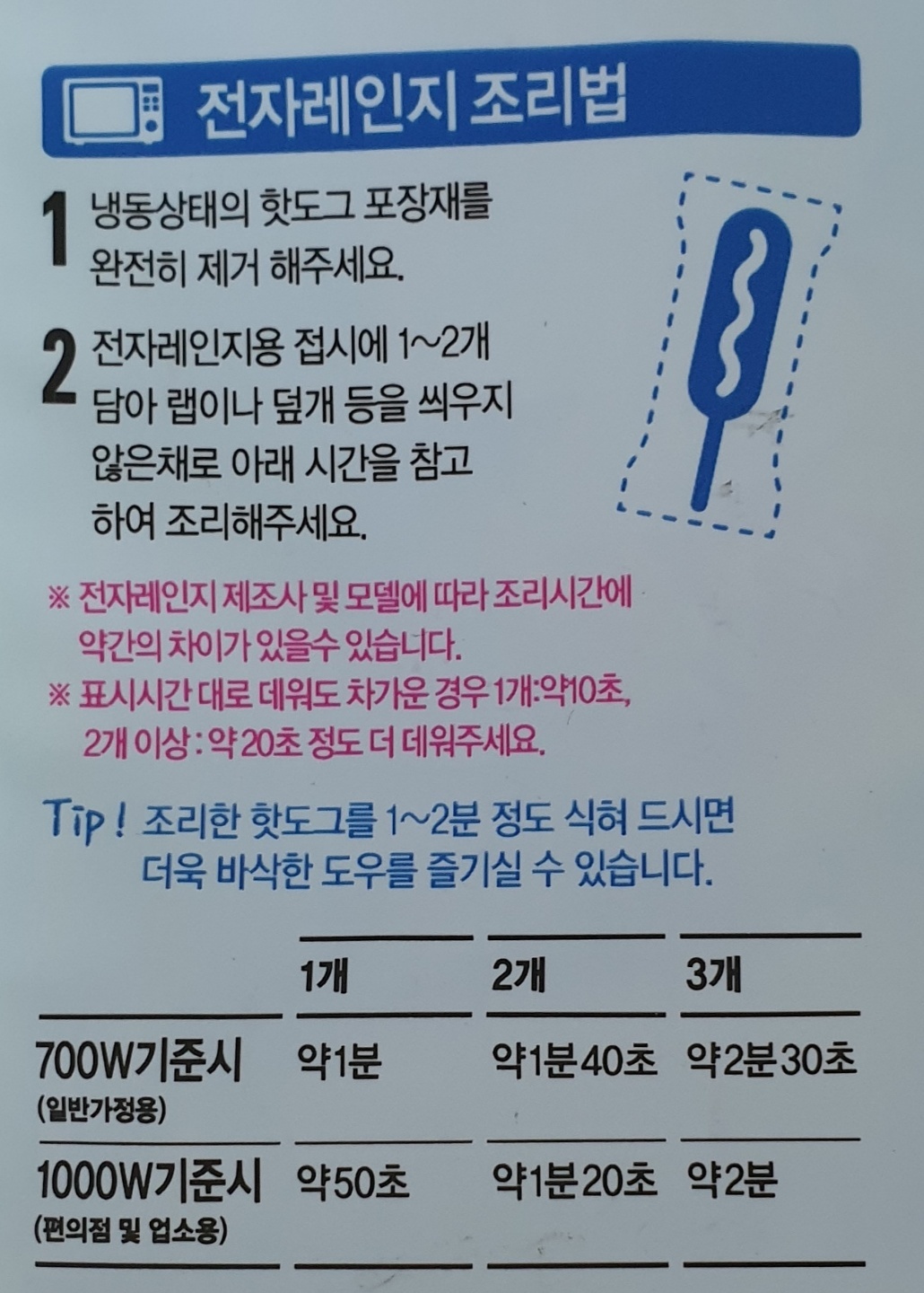 ※ 표시시간대로 데워도 차가운 경우 1개: 약 10초, 2개 이상: 약 20초 정도 더 데워주세요.