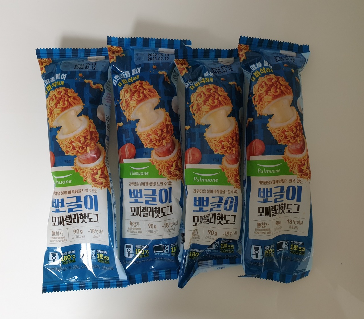 이번에 먹어본 음식은 풀무원 뽀글이 모짜렐라 핫도그 입니다.