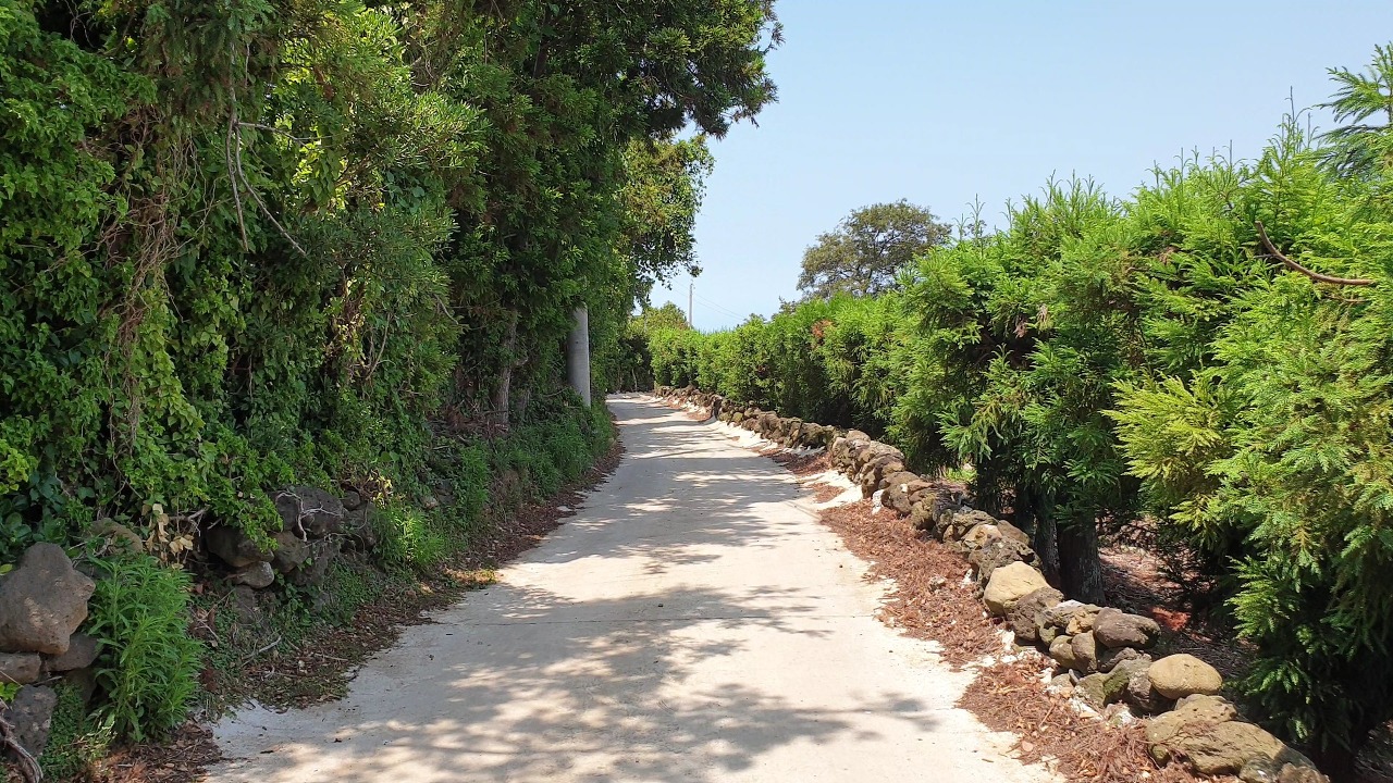 1. 코스: 광령1리 사무소 → 무수천 → 외도포구 → 알작지해변 → 몽돌해변 → 현사포구 → 이호테우해변