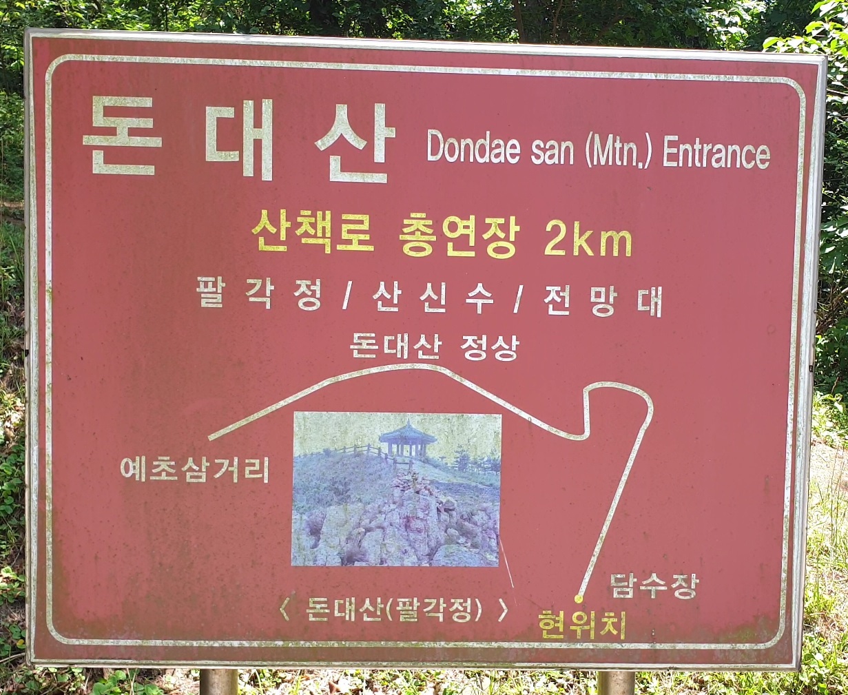중간 스탬프가 있는 돈대산을 등반합니다.