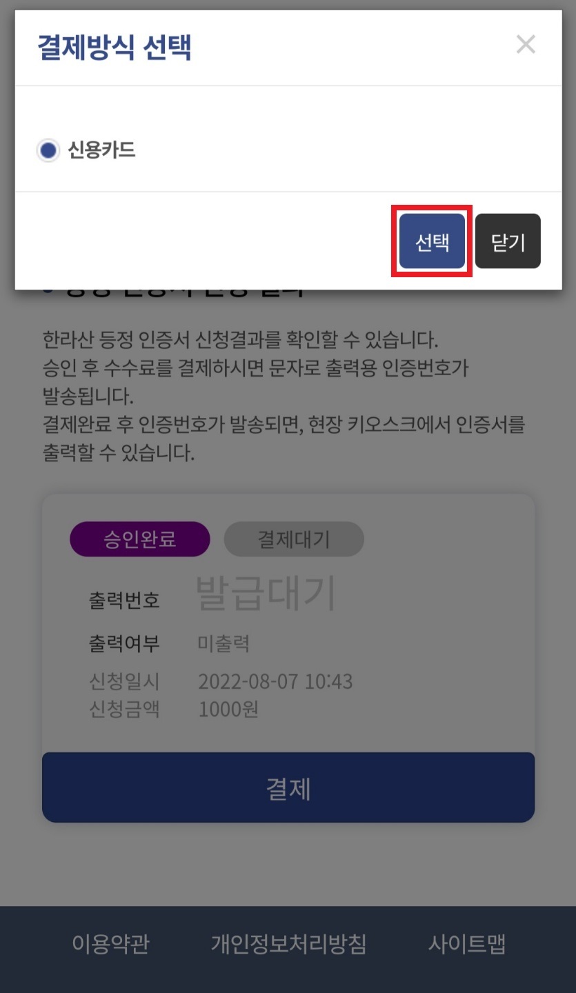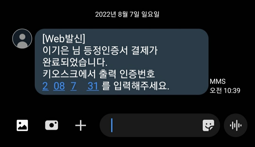 - 결제까지 완료되었다면, 핸드폰번호로 출력 인증번호가 갑니다.