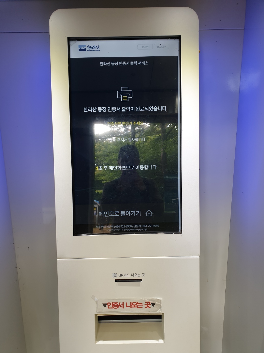 - 하산을 완료하면 탐방로 입구에 정상 등정 발급기가 있습니다.