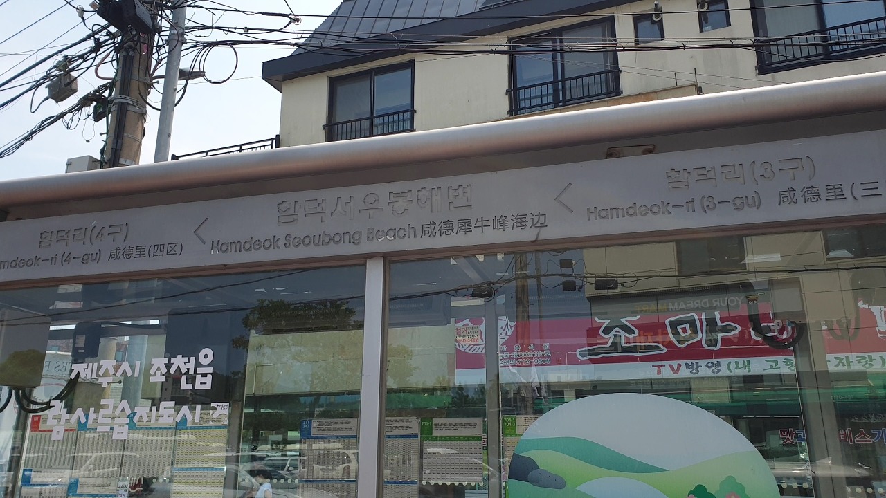326번 버스를 타고 함덕 서우봉 해변 정류장(함덕 환승 정류장)에 내렸습니다.