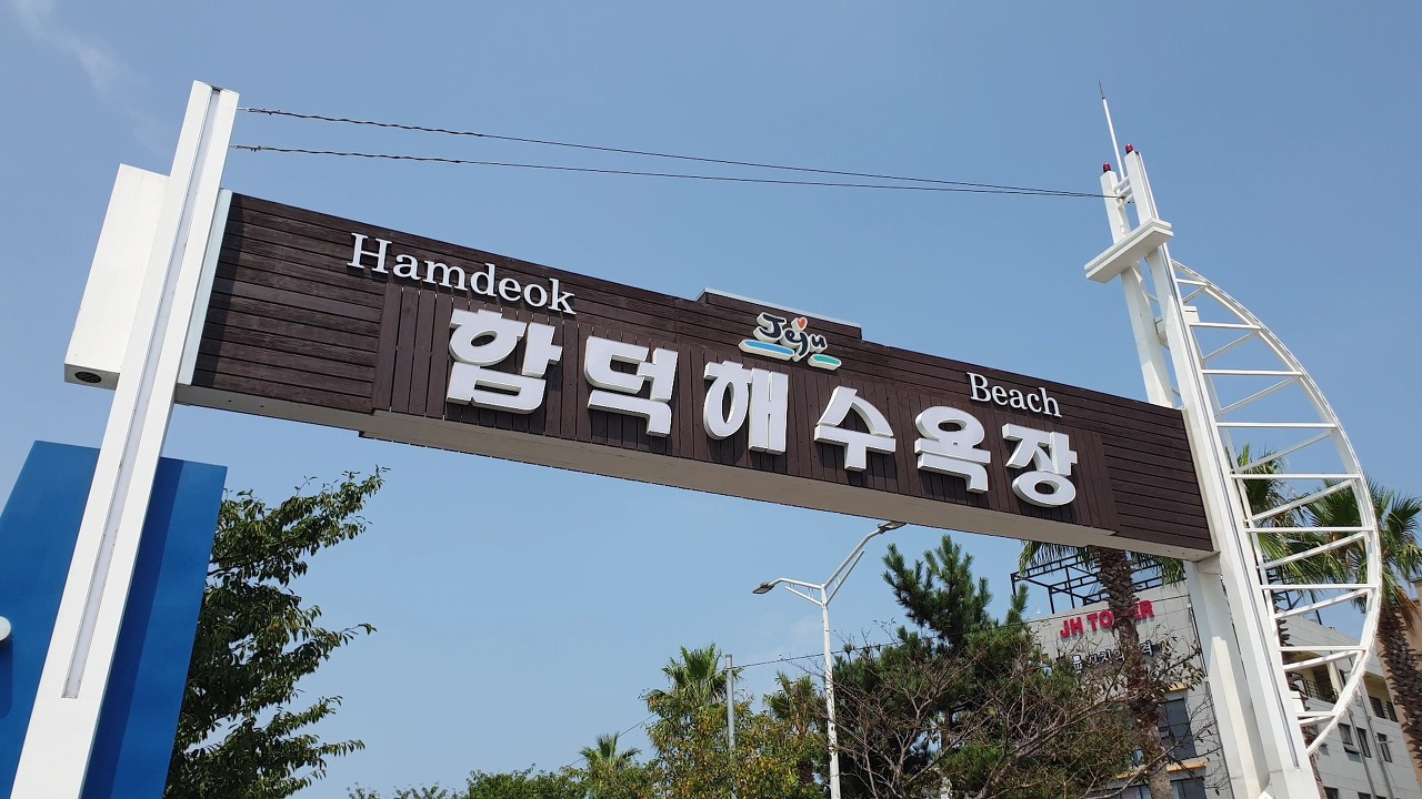 함덕 해수욕장은 휴가철에 많은 사람들이 물놀이를 하러 찾아오고,