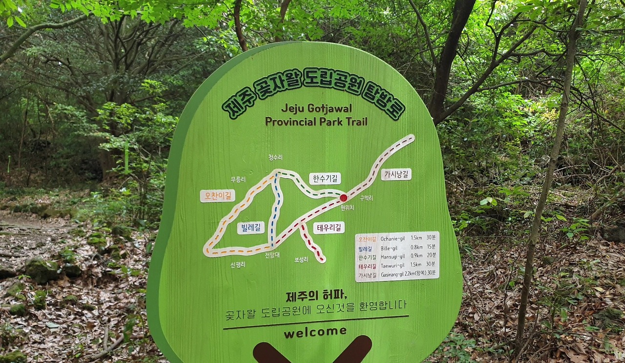 제주 곶자왈 도립공원은 총 5개의 길로 구성되어 있습니다.