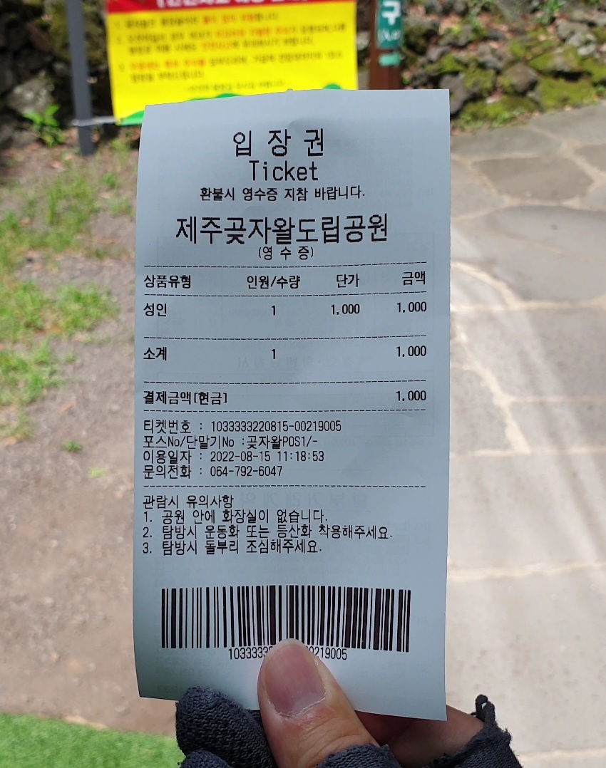 저는 성인 1명이라서 1,000원의 입장료를 냈습니다.