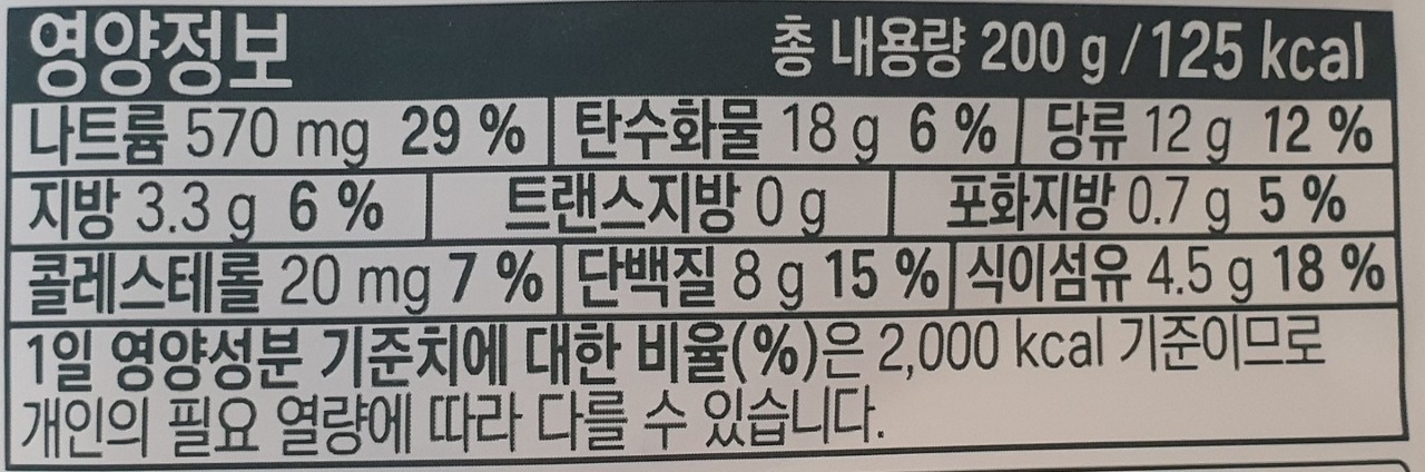 - 5무첨가: D-소비톨액, 아스파탐(감미료), 글루코노델타락톤(GDL), 수크랄로스(감미료), 아세설팜칼륨(감미료)