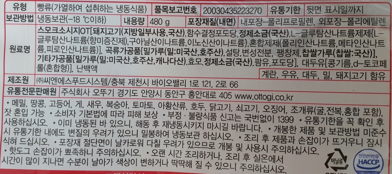 원재료 정보가 적혀 있습니다.
