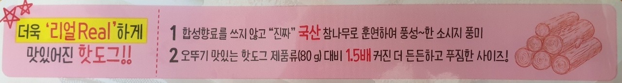 1. 합성향료를 쓰지 않고 진짜 국산 참나무로 훈연하여 풍성한 소시지 풍미