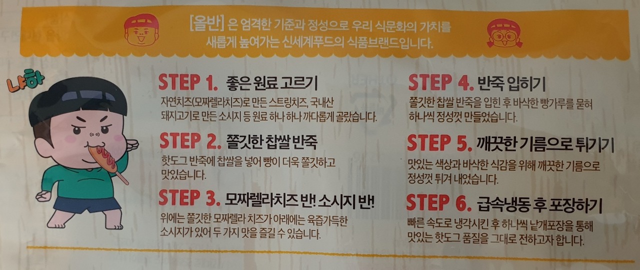 빠른 속도로 냉각시킨 후 하나씩 낱개포장을 통해 맛있는 핫도그 품질을 그대로 전하고자 합니다.
