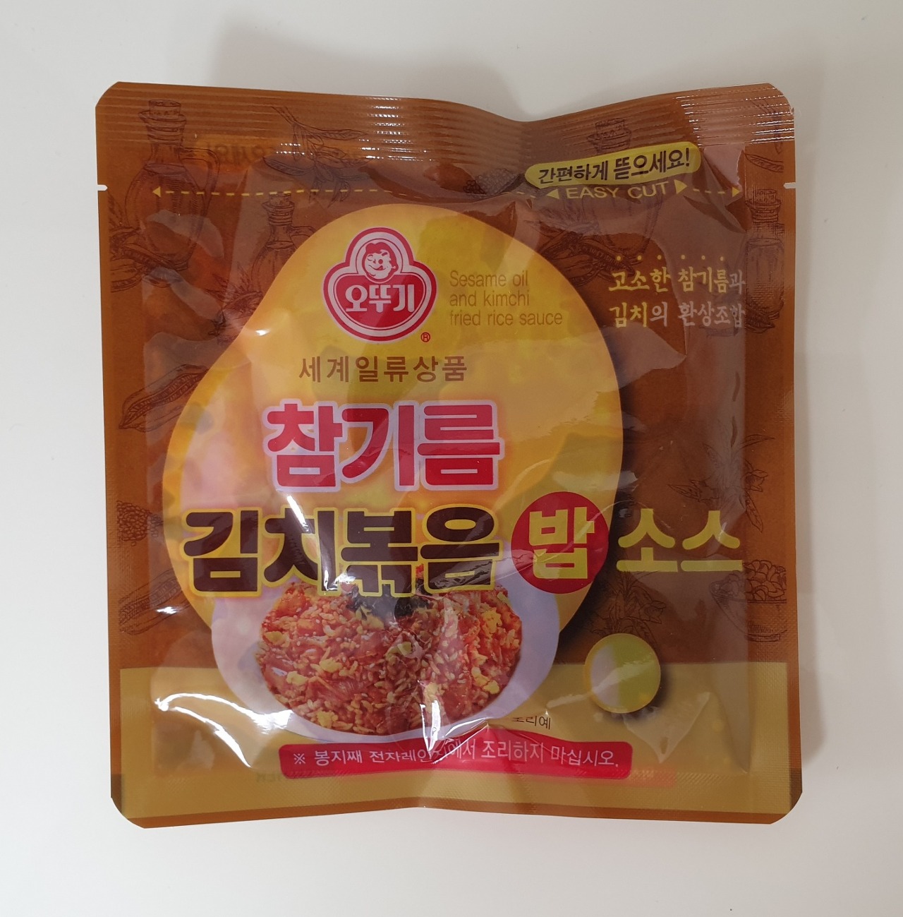참기름 김치볶음밥 소스가 들어 있습니다.
