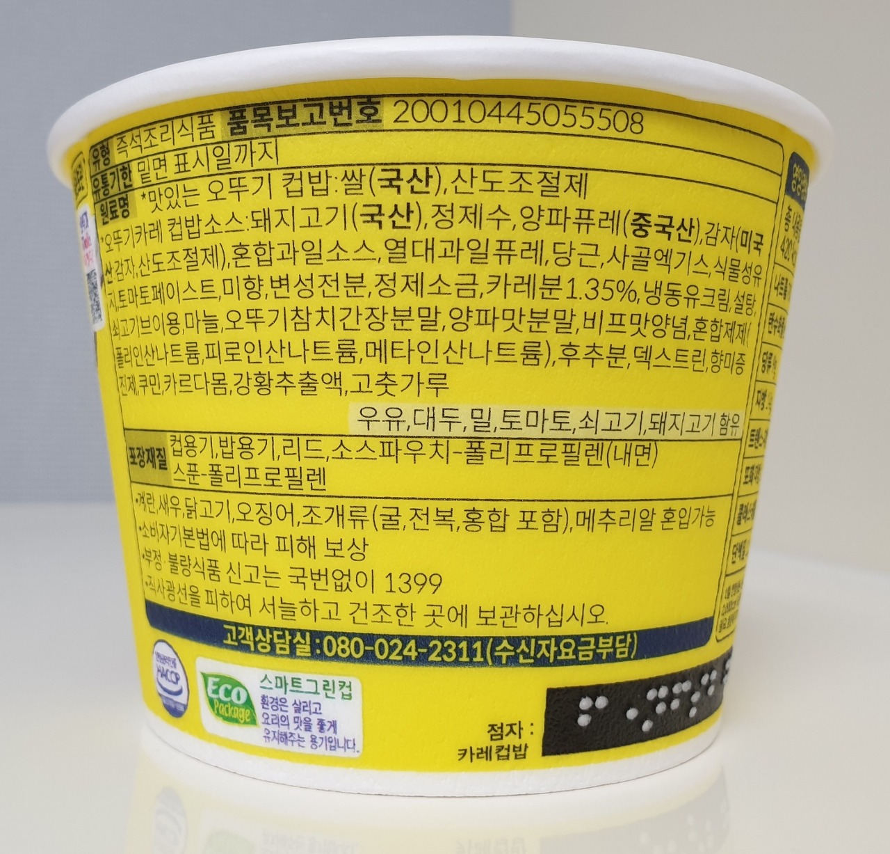 오뚜기 카레 컵밥 소스가 들어 있습니다.