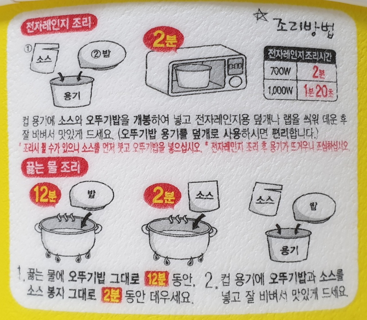 * 전자레인지 조리 후 용기가 뜨거우니 조심하십시오.