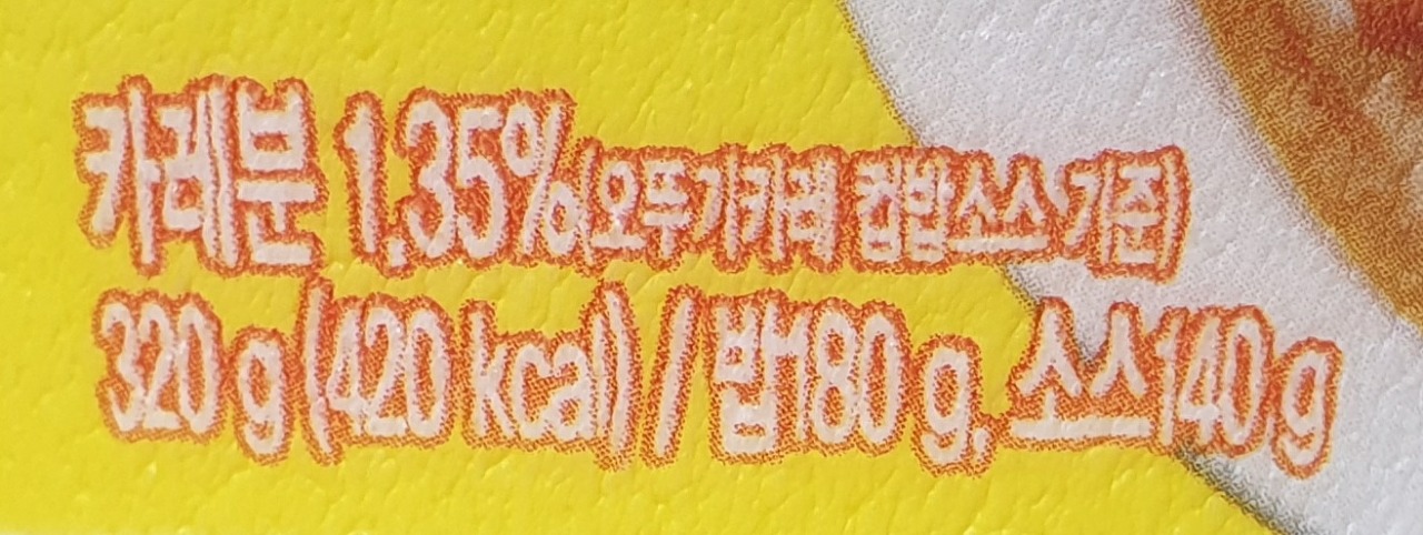 카레분 1.35% (오뚜기 카레 컵밥 소스 기준)