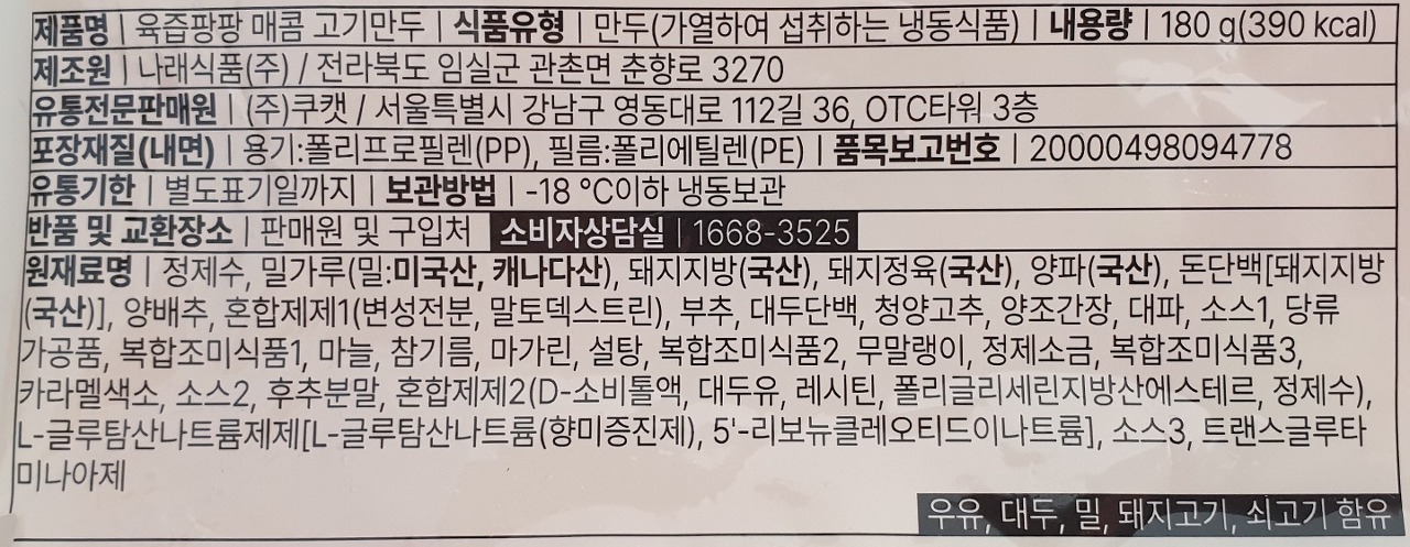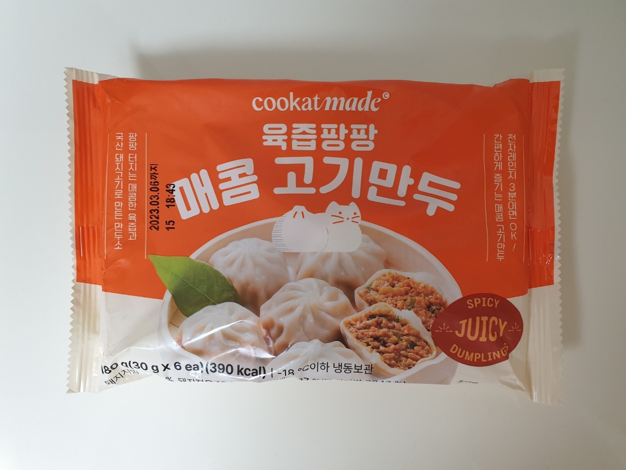 이번에 먹어본 음식은 육즙팡팡 매콤 고기만두 입니다.