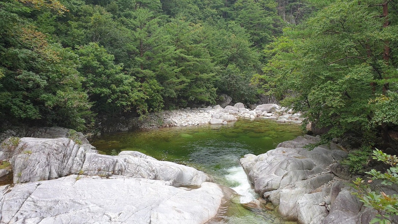 계곡물이 정말 푸르고 깨끗합니다.