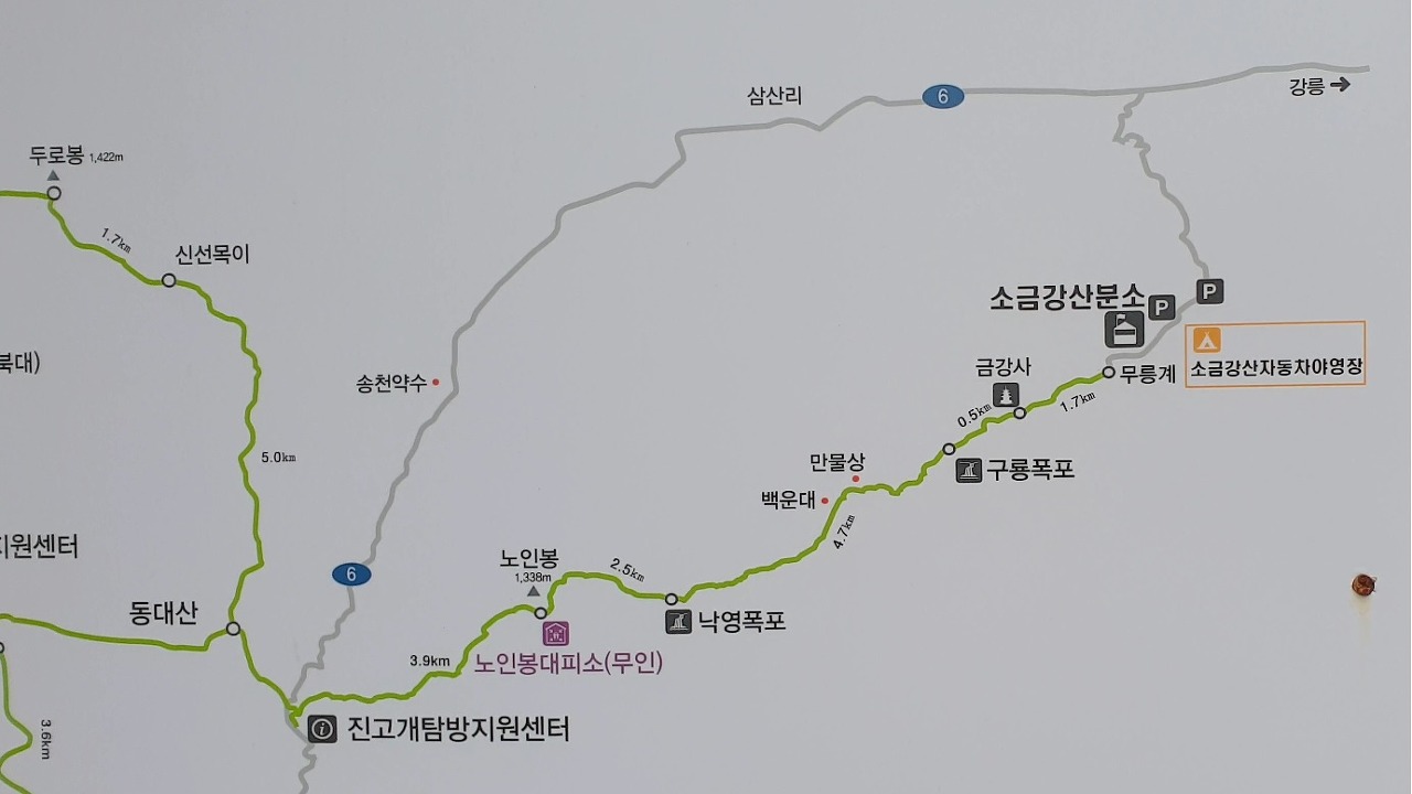 1. 코스 : 소금강산분소 → 무릉계 → 금강사 → 구룡폭포