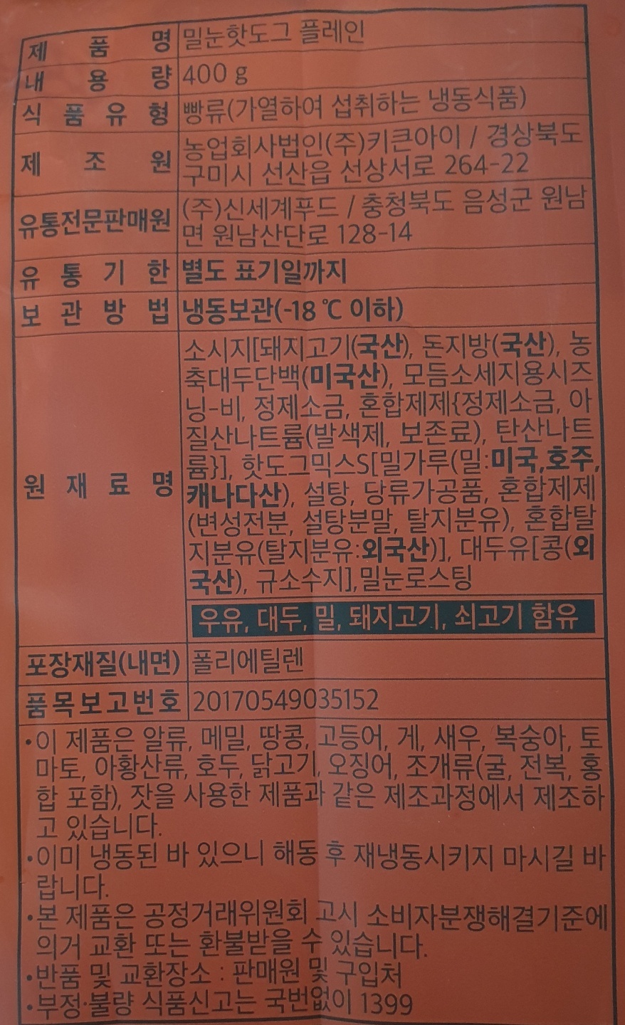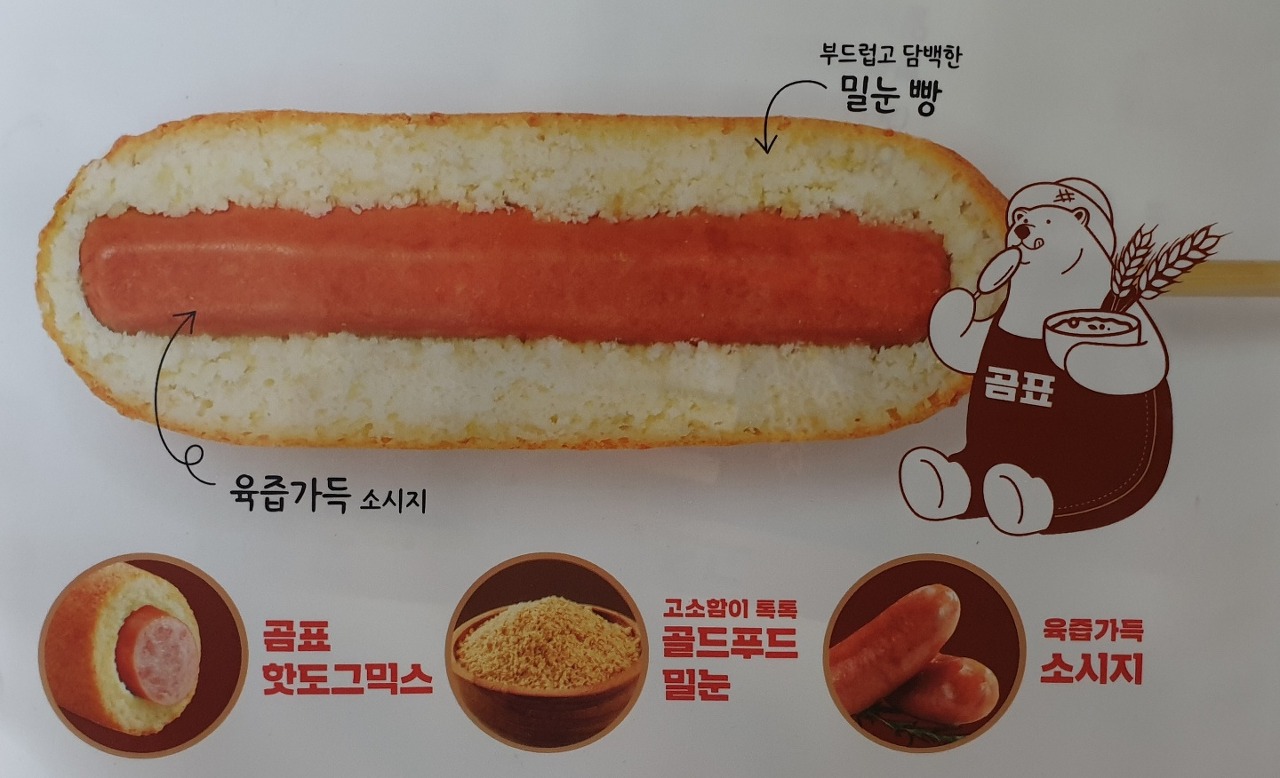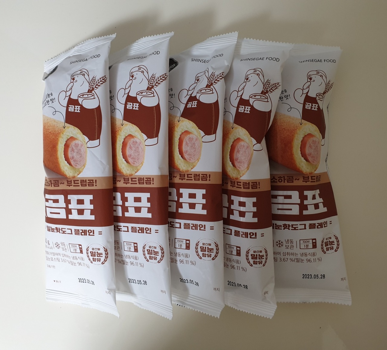 냉동 상태인 핫도그 포장지를 완전히 벗긴 후 180℃에서 12~13분간 조리하십시오.
